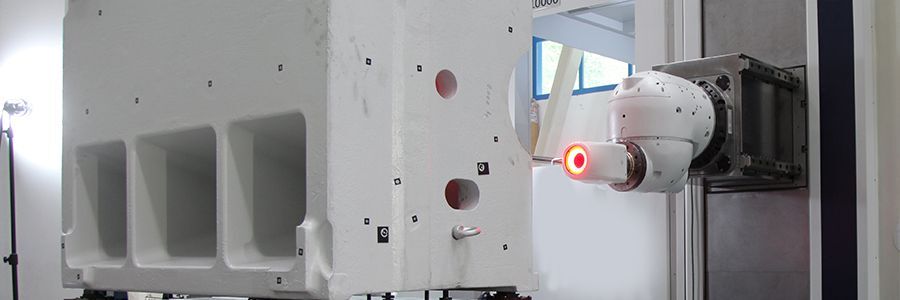 For the measurement and fitting outside the machine, photogrammetric technology is used which measures the raw workpiece, compares its final geometry with the finished part CAD/CAM systems, calculates the best fit using a specific software and identifies references. The alignment in the machines is carried out using this referencing.